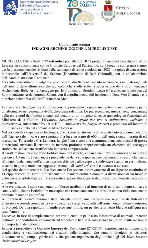 COMUNICATO STAMPA SOPRINTENDENZA ARCHEOLOGIA BELLE ARTI E PAESAGGIO PER LE PROVINCE DI BRINDIS LECCE E TARANTO A Trecento anni dalla nascita dell’oritano Francesco Milizia, enigmatico storico e teorico neoclassico dell’architettura, la Soprintendenza Archeologia Belle Arti e Paesaggio per le provincie di Brindisi, Lecce e Taranto, in collaborazione con le sezioni territoriali Messapia e SudSalento di Italia Nostra APS e con la Società di storia patria per la Puglia, sezione di Oria, con il patrocinio dei Comuni di Lecce, Erchie e Oria, con la partecipazione del DiSDRA (Dipartimento di Storia, Rilievo e Restauro dell’Architettura) Facoltà di Architettura, ‘Sapienza’ Università di Roma, ha ritenuto opportuno promuovere le giornate di studio dal titolo: 1725 – 2025.